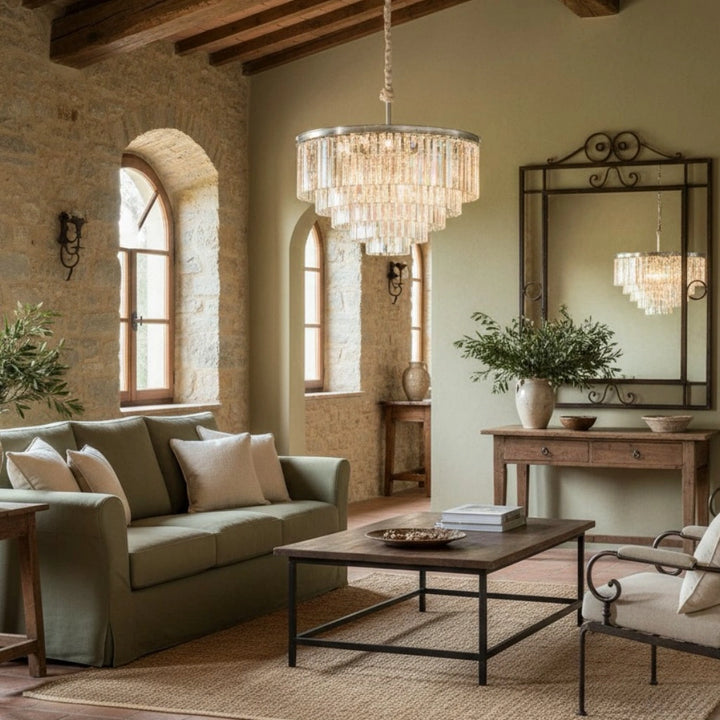 Este candelabro vintage de lujo de cristal, fabricado con metal de primera calidad y prismas de cristal transparente de alta gama, es ideal para su instalación en salas de estar, comedores, vestíbulos o dormitorios.