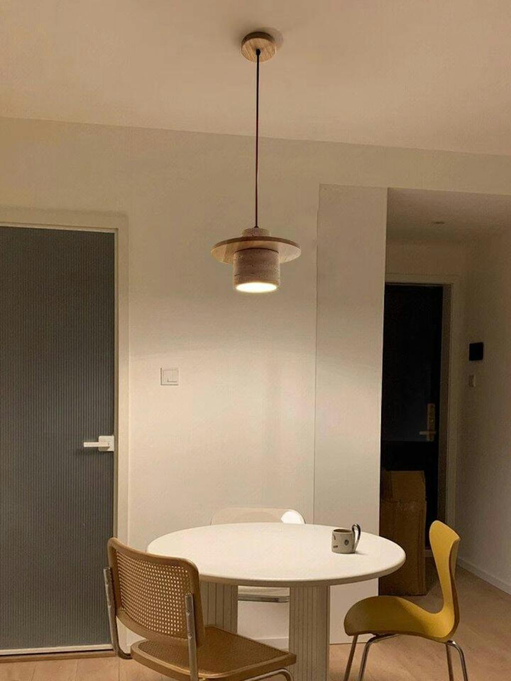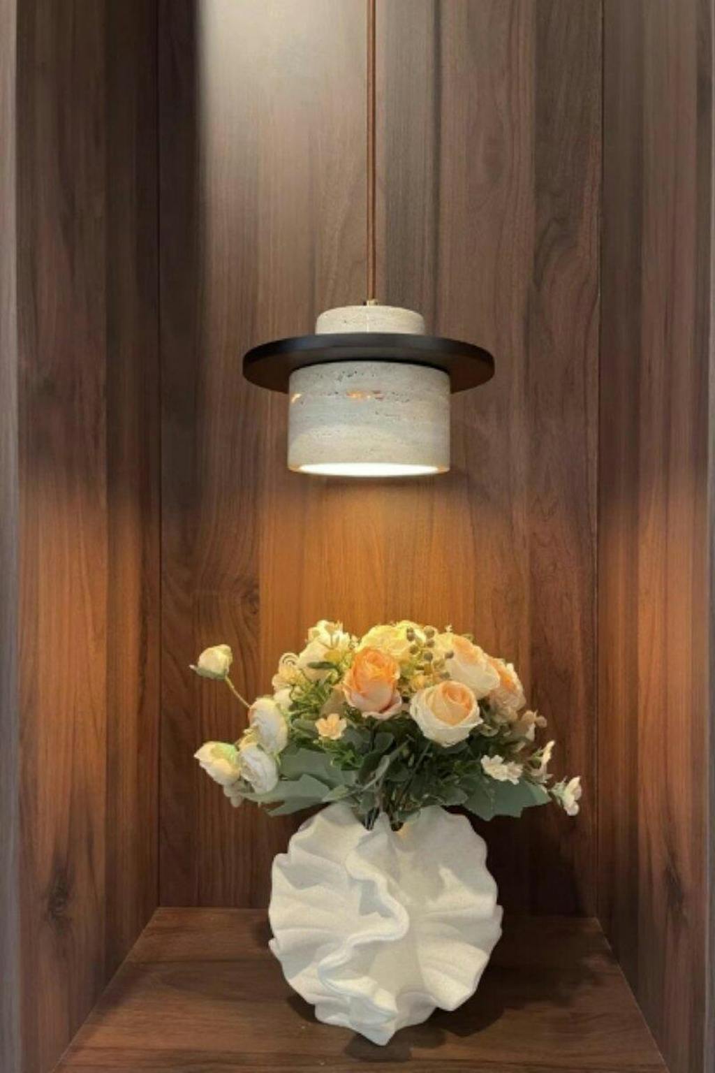 La lámpara colgante de piedra travertino nórdica es una impresionante fusión de belleza natural y diseño contemporáneo, que presenta una combinación única de materiales y crea un equilibrio armonioso entre lo orgánico y lo moderno.