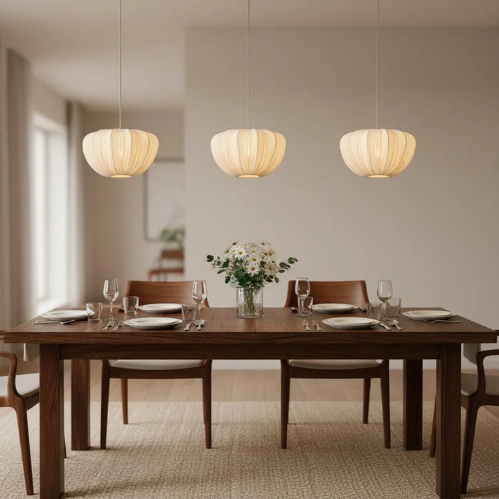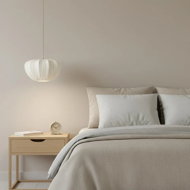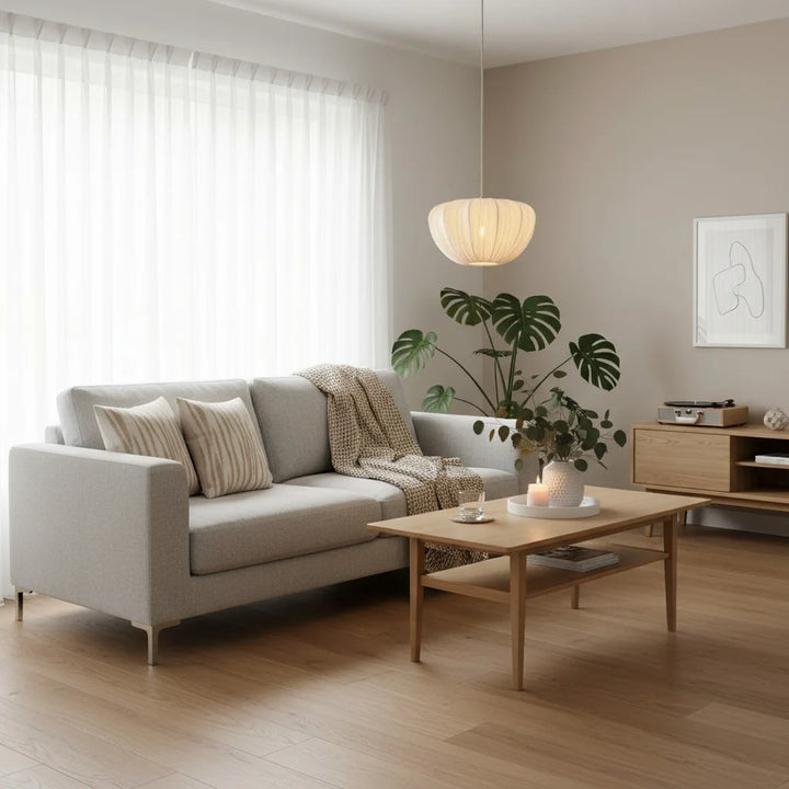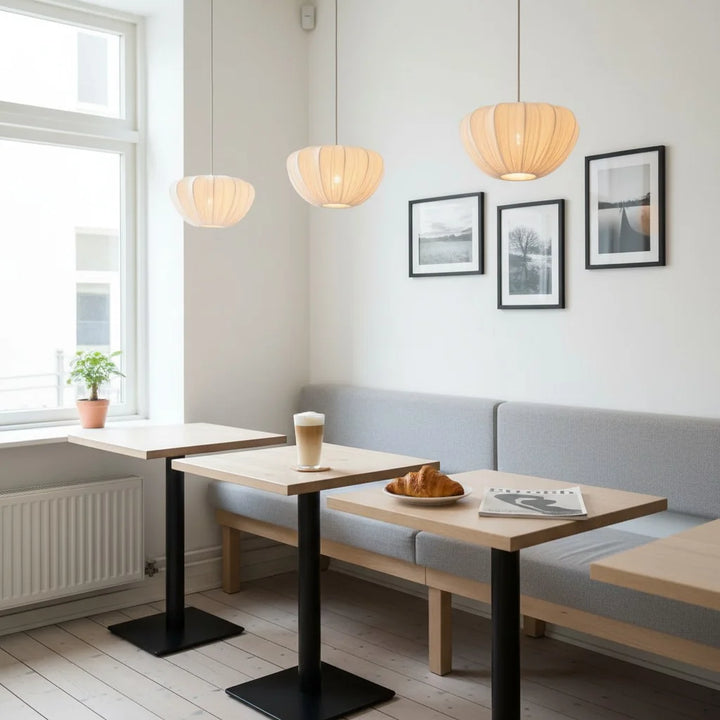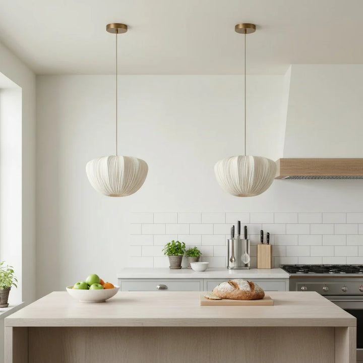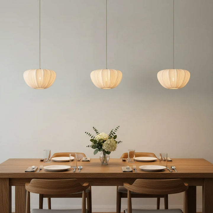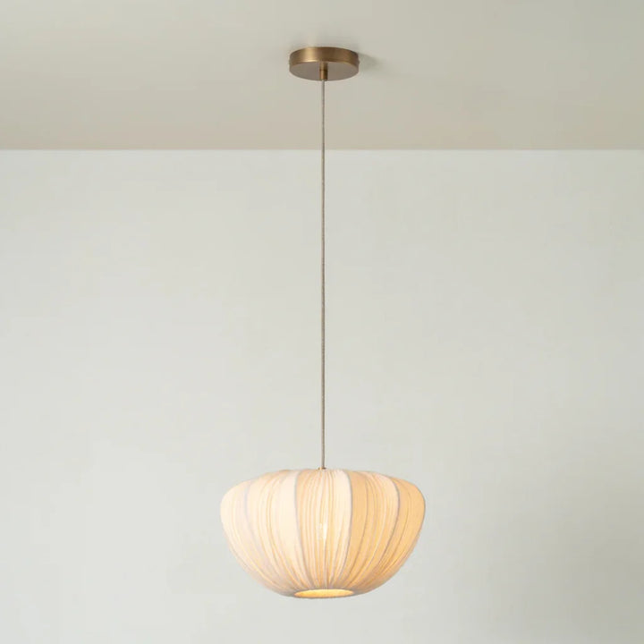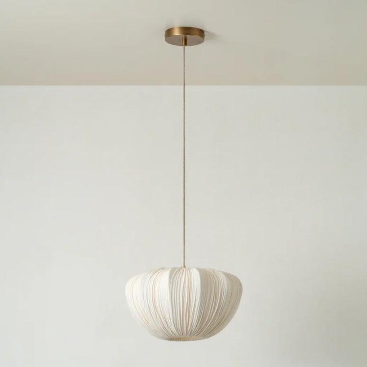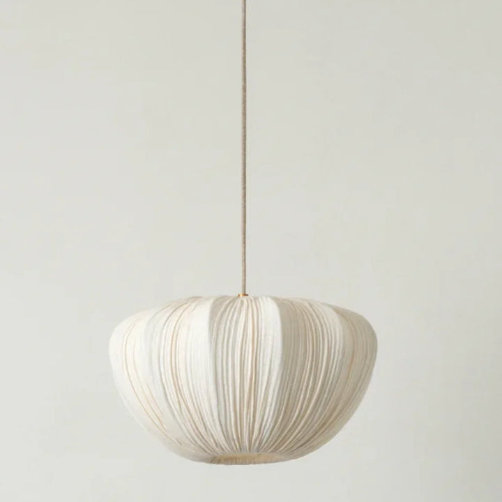 Esta lámpara colgante minimalista moderna presenta un diseño suave y estructural: un marco curvado envuelto en una rica tela de lino color blanco roto, combinado con un cable de lino ajustable. Clásica pero vibrante, crea un efecto impactante ya sea colgada sola o en conjunto.
