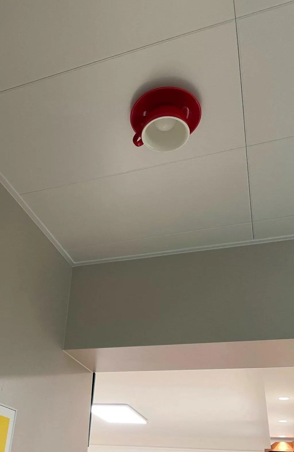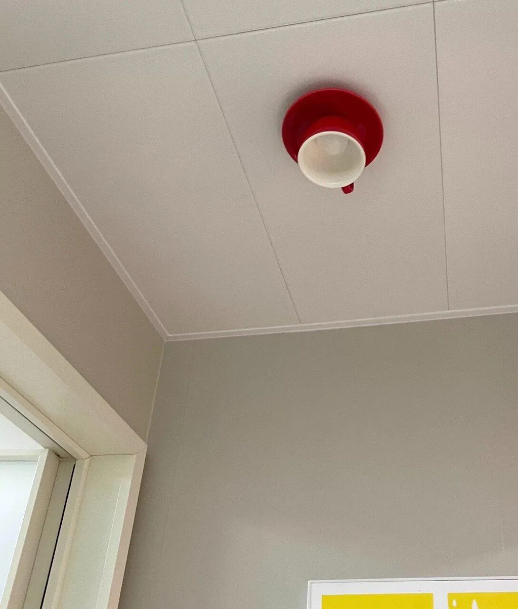 Le plafonnier imite un ensemble tasse-soucoupe coloré, diffusant une lumière d'ambiance ludique. Idéal pour les cafés ou les chambres, alliant décoration originale et savoir-faire céramique durable.