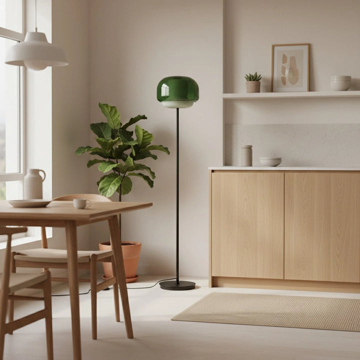 Progettata con dettagli in metallo eleganti e accenti artistici in vetro, questa lampada contemporanea aggiunge personalità e sofisticazione agli interni, rendendola ideale per soggiorni, camere da letto o spazi studio alla moda.