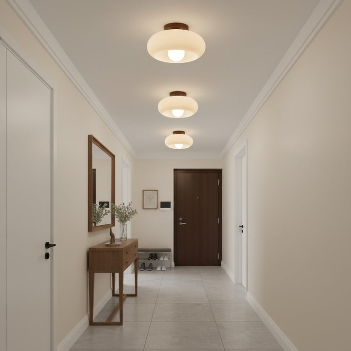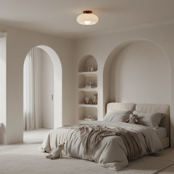 🌟1. Fascino estetico morbidoQuesta lampada da soffitto presenta un paralume in vetro bianco ad alta trasmittanza, aggiungendo un tocco elegante e sofisticato a qualsiasi spazio, presentando uno stile elegante e nobile.