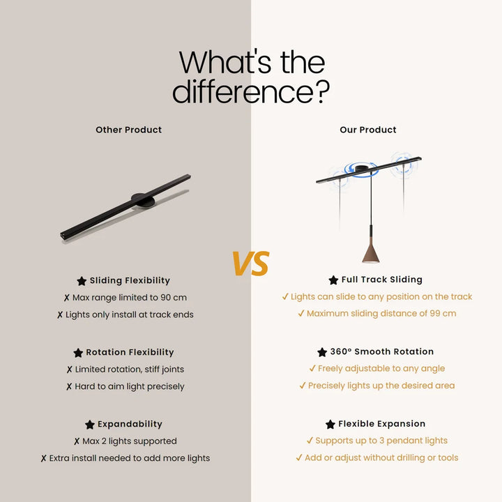 De plafondrail is een moderne, innovatieve oplossing die is ontworpen om een hoge mate van flexibiliteit te bieden voor je hanglamp om te bewegen en te vervangen. Lampen zijn niet inbegrepen, maar de universele compatibiliteit maakt het geschikt voor een breed scala aan hanglampen.