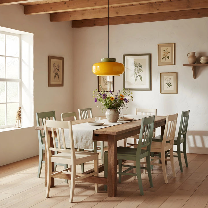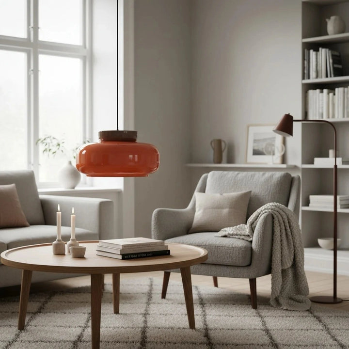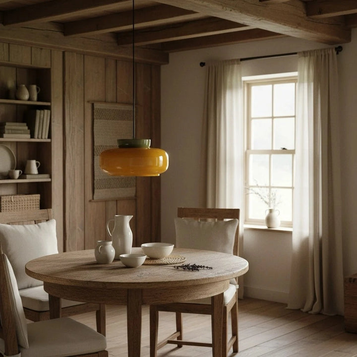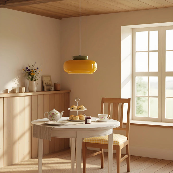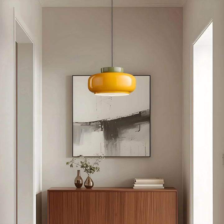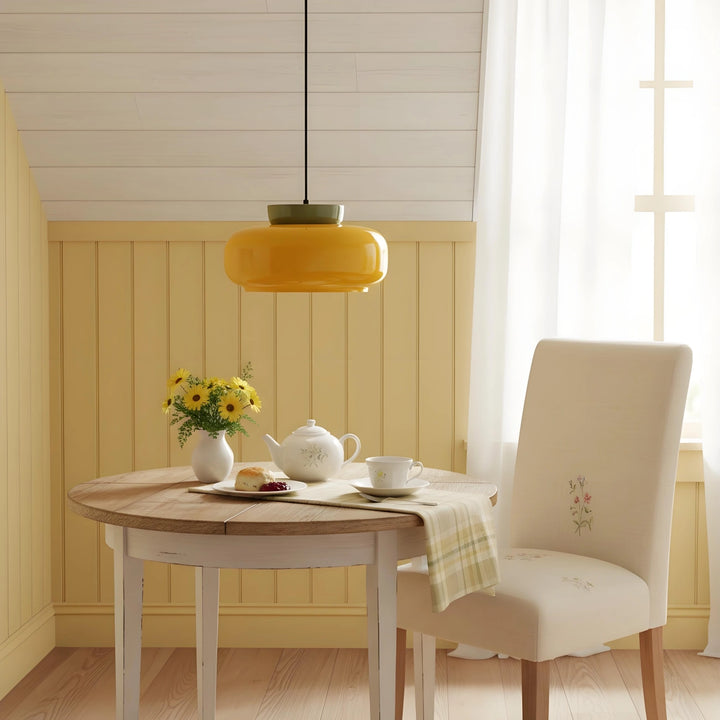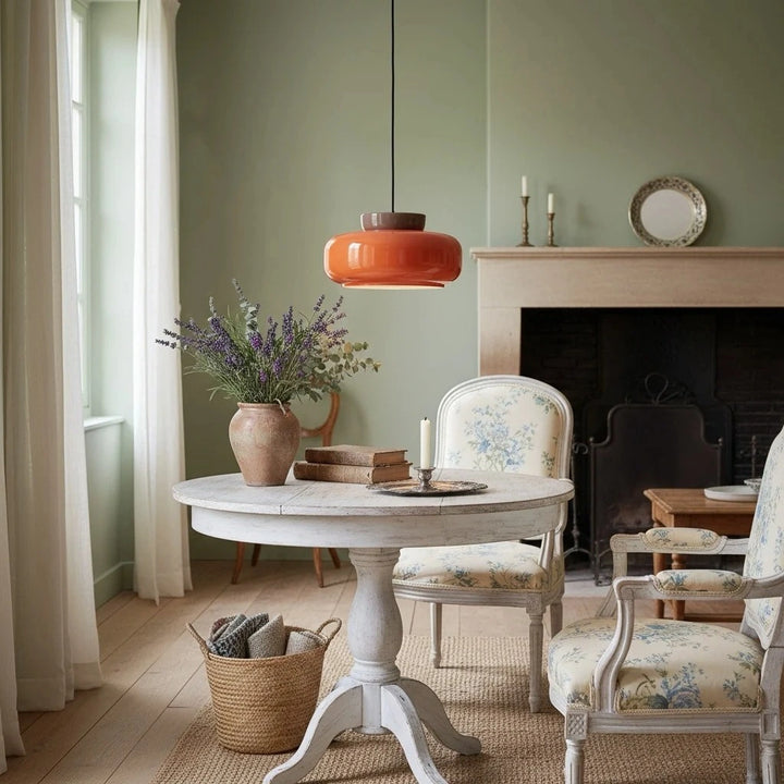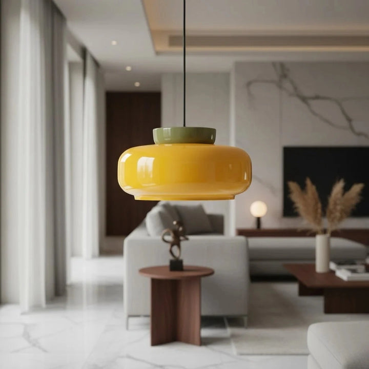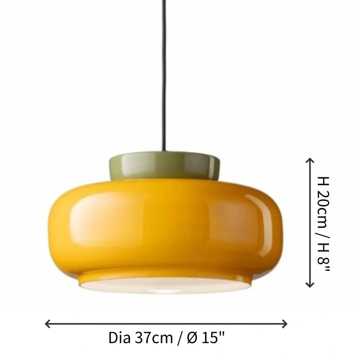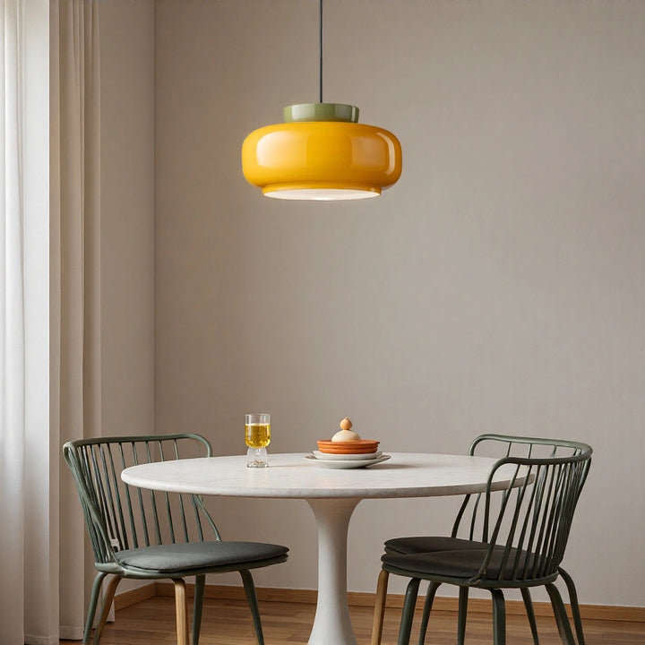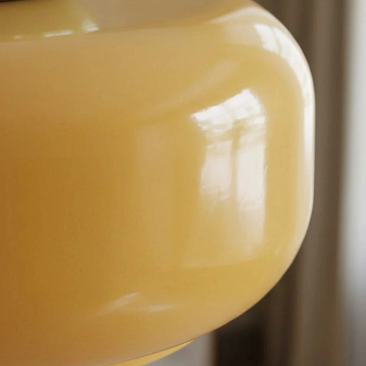 Gemaakt van uniek keramiek en beschilderd glas, maakt de stijlvolle schijfvormige bolvorm van deze lamp het een blikvanger in elke woonkamer, eetkamer of slaapkamer.