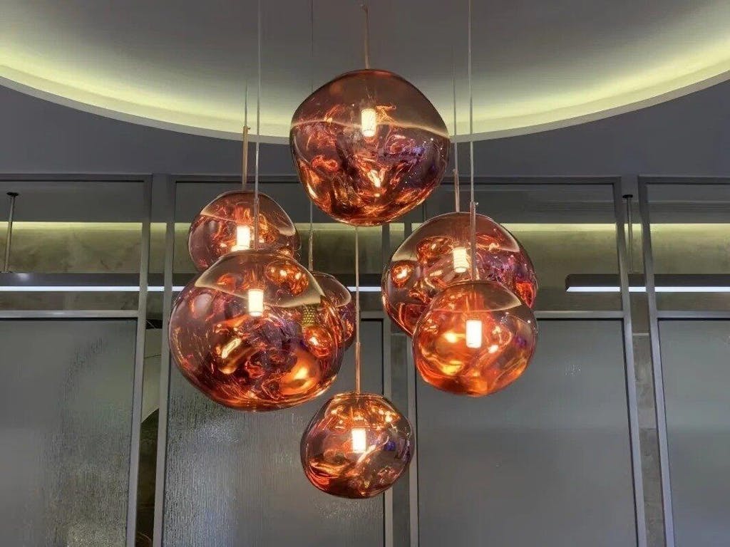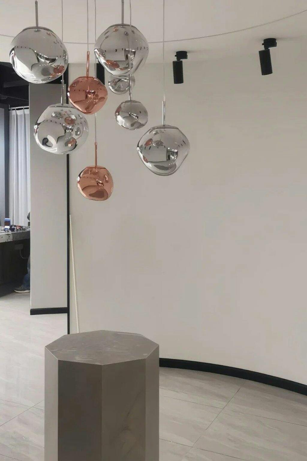 De Minimalistische Artistieke Lava Melt Hanglamp heeft een gesmolten reflecterende kap die een warm, sfeervol licht werpt. De vloeiende sculpturale vorm en zachte, gloeiende verlichting voegen moderne elegantie toe aan woon- of eetruimtes en creëren een verfijnde visuele uitstraling.