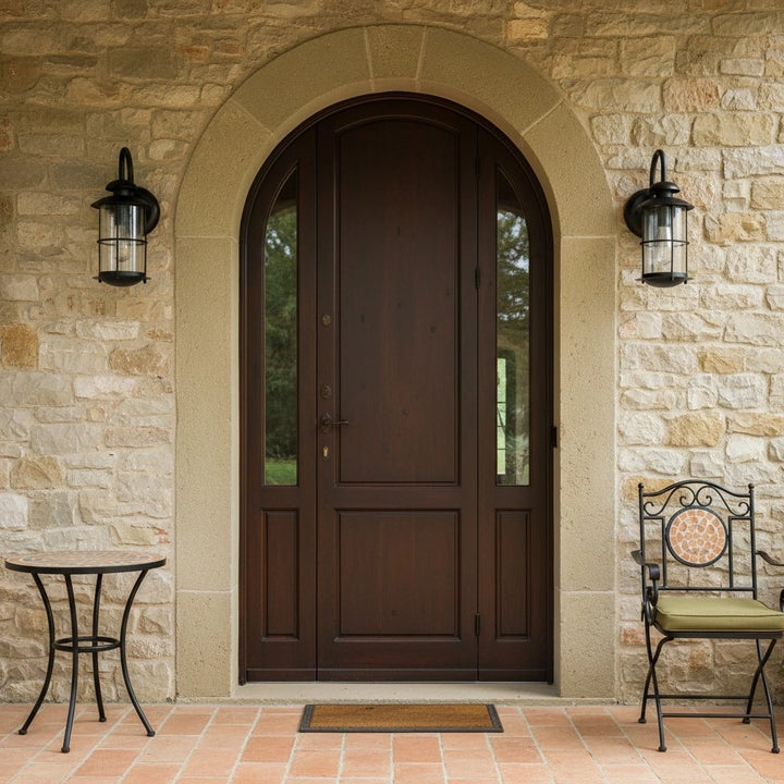 Ta retro industrialna lampa ścienna jest wykonana z żelaza i szkła, odpowiednia do użytku wewnętrznego, na ganek, taras i wejście.