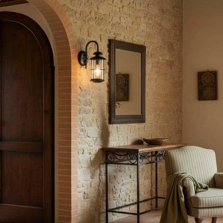 Craig Retro Industrialna Szklana Lampa Ścienna Latarnia