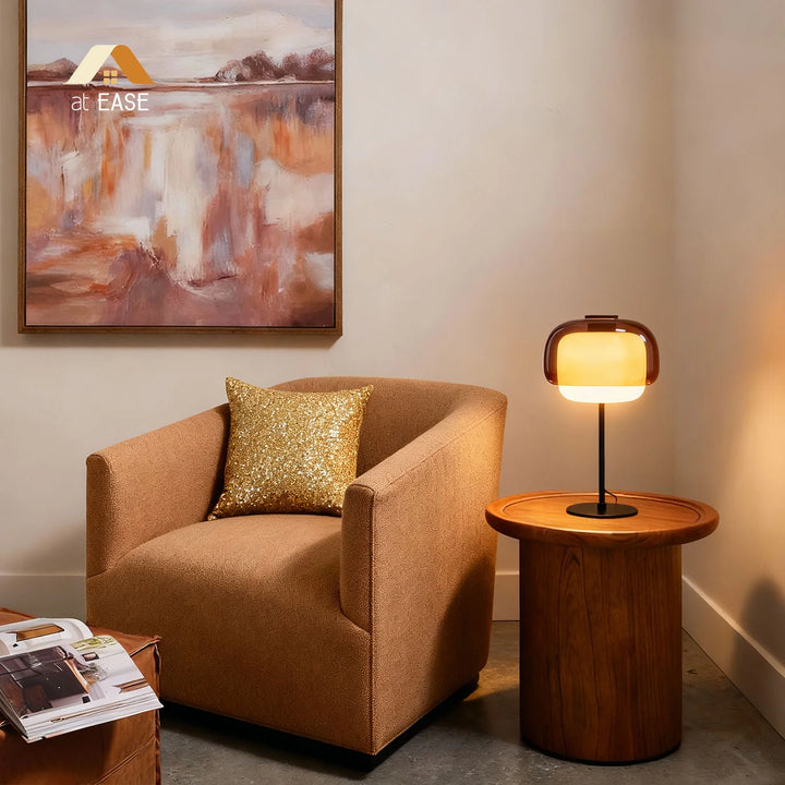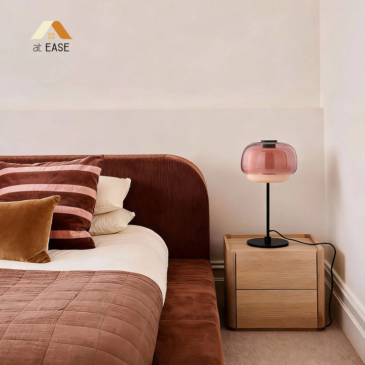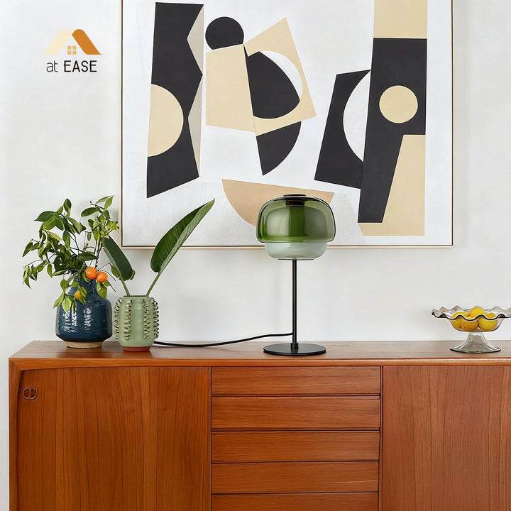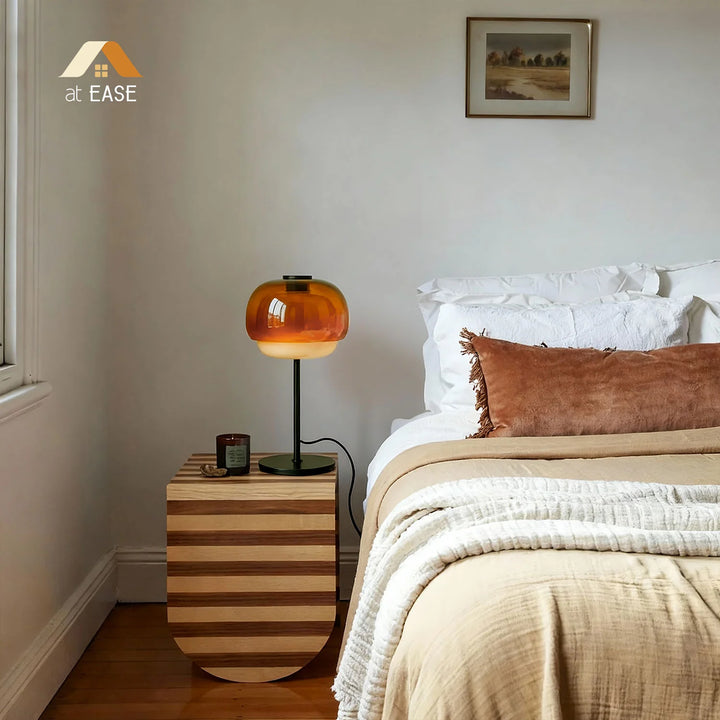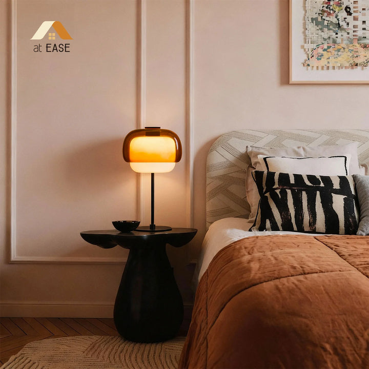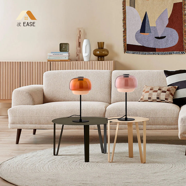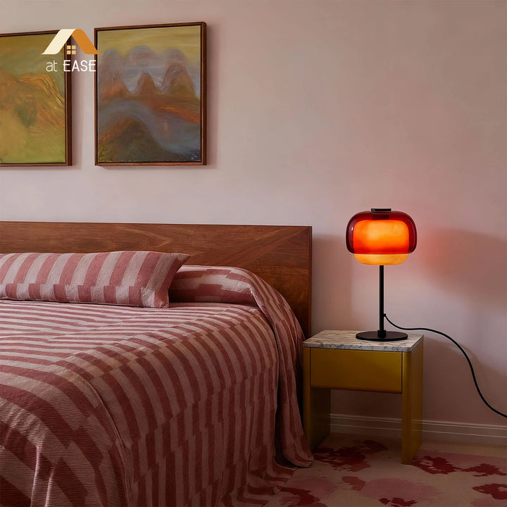 Ta kolorowa szklana lampa rozświetla każde pomieszczenie ciepłym, delikatnym blaskiem — idealna na stolik nocny, biurko lub do salonu. Łącząc artystyczną pracę ze szkłem z subtelnym, kojącym światłem, przemienia codzienne zakątki w chwile spokoju i piękna.