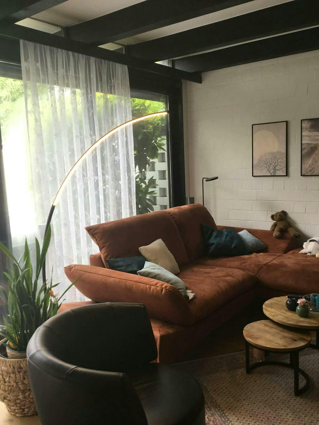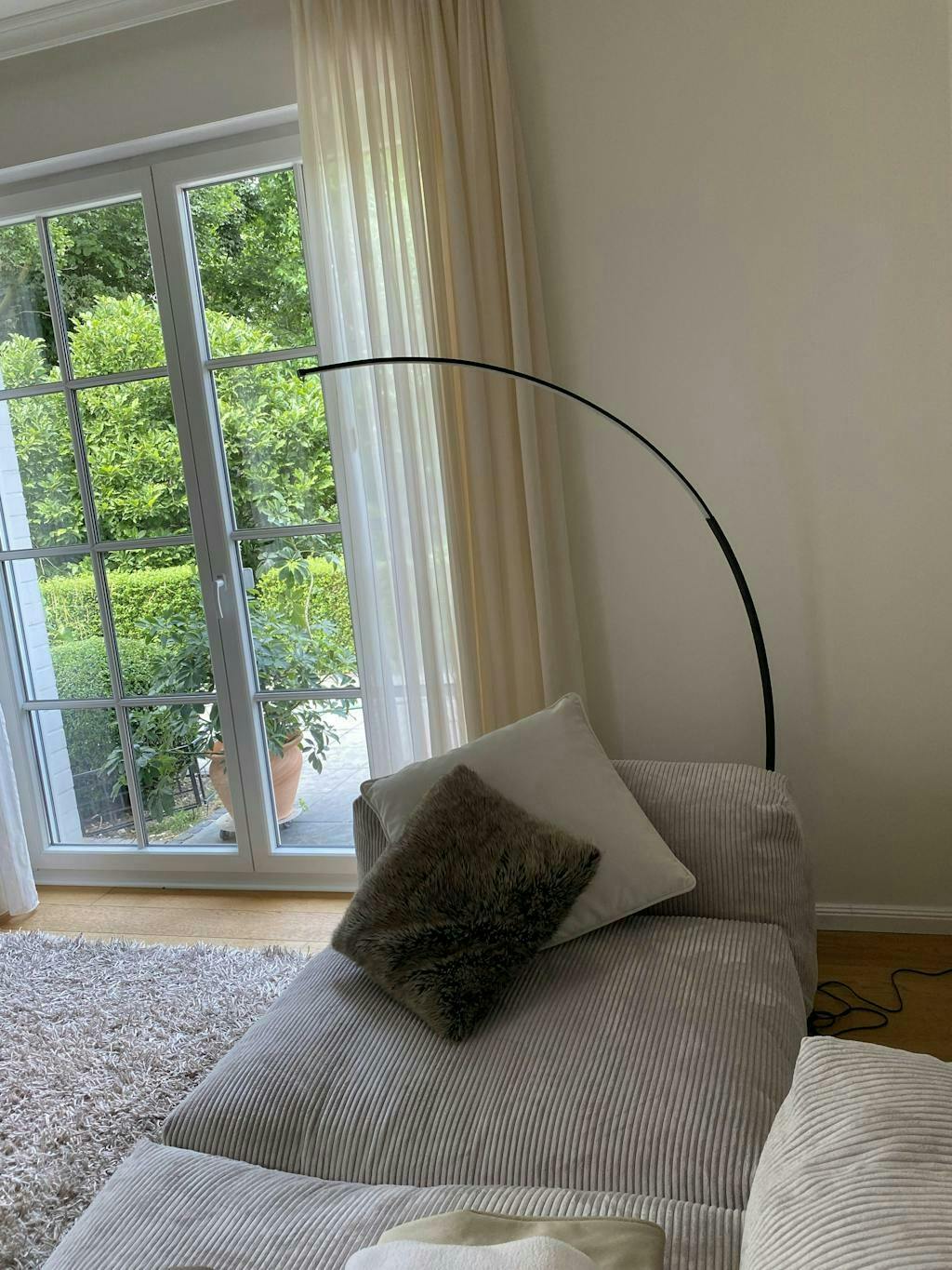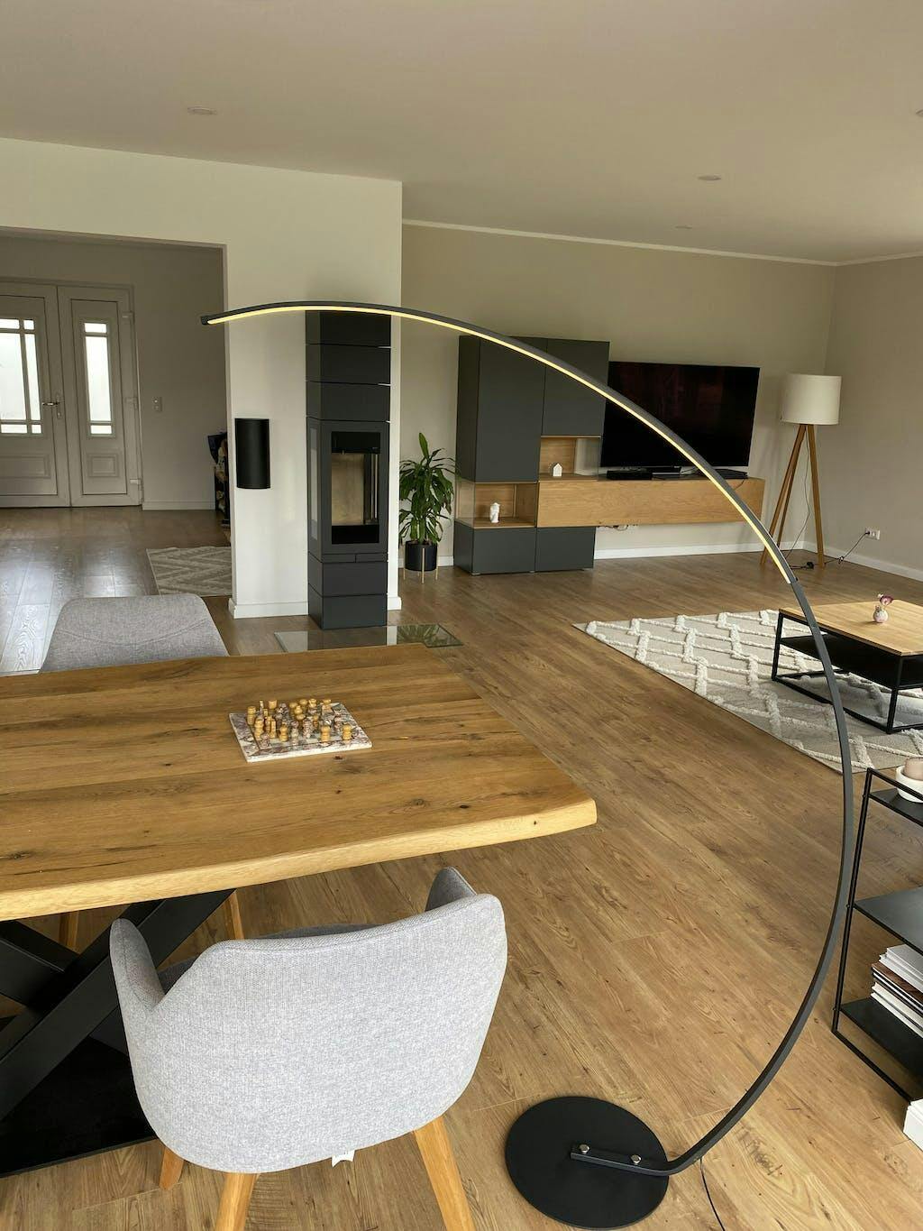 Podnieś swoje wnętrze dzięki ściemnialnej lampie podłogowej Madera LED w kształcie łuku, oferującej idealne oświetlenie nastrojowe od delikatnego blasku po jasne światło.