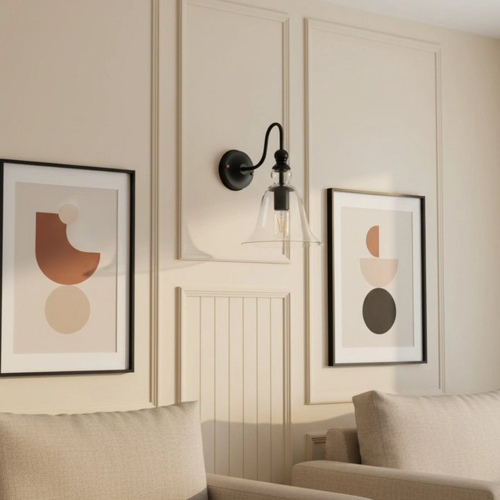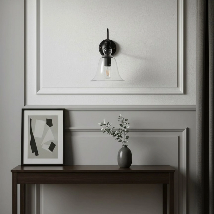 Ta lampa ścienna jest wykonana ze szkła i jest idealna do sypialni, salonów lub korytarzy w stylu wiejskim lub minimalistycznym.