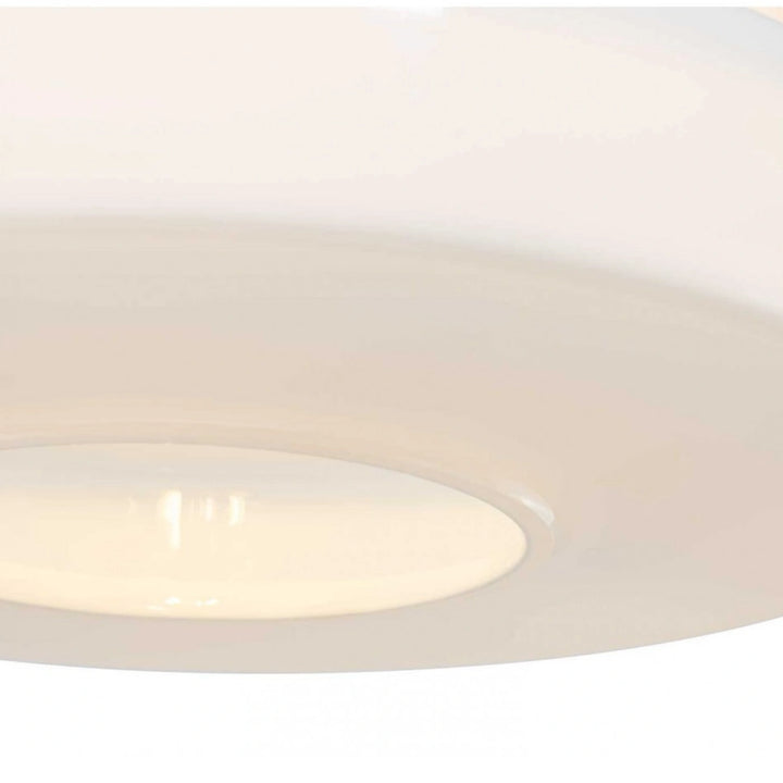 This is a sculptural glass light that resembles both a cake and a hat. It can be installed individually in small spaces or in combination in larger spaces.