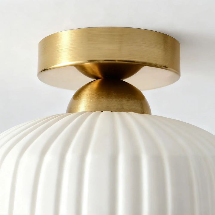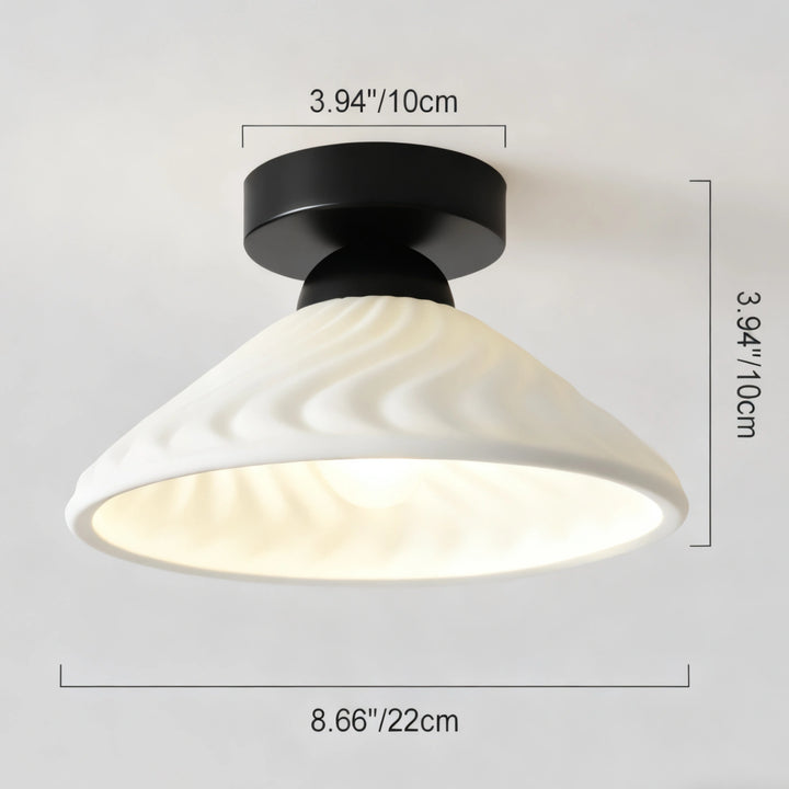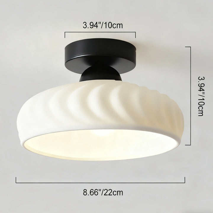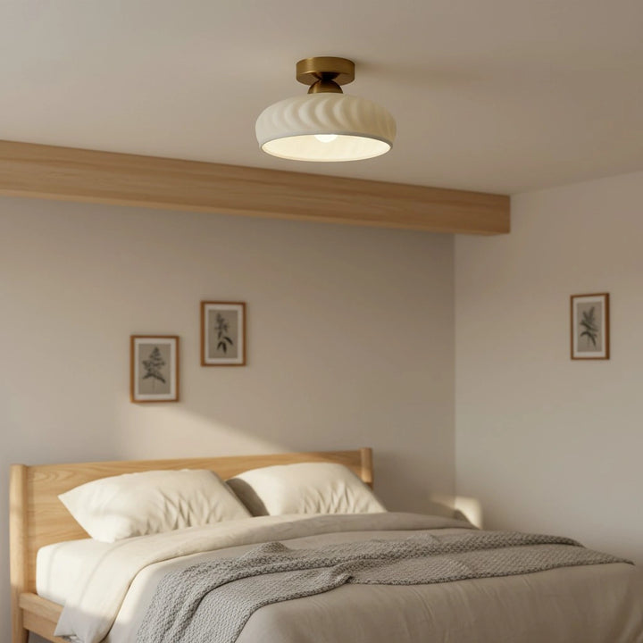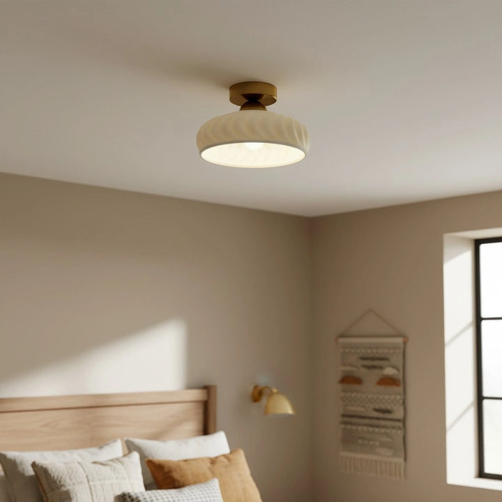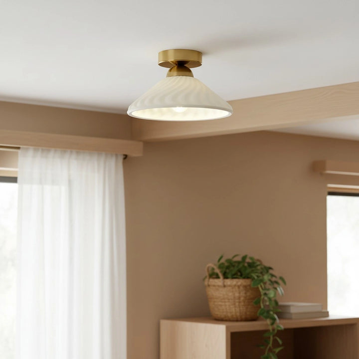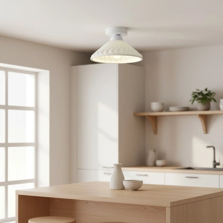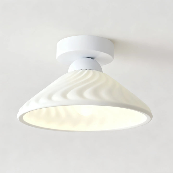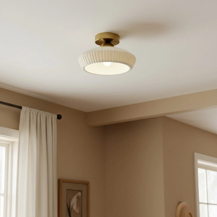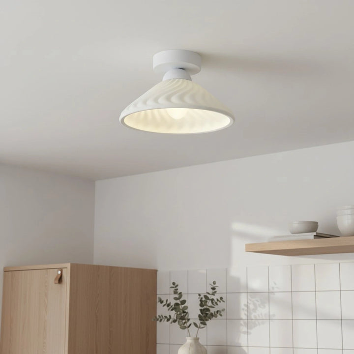 This semi-recessed ceiling light features a modern, minimalist design and a ceramic lampshade available in a variety of unique textures to suit different styling needs.