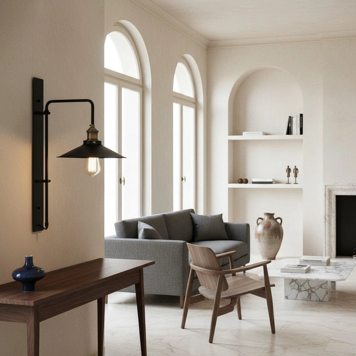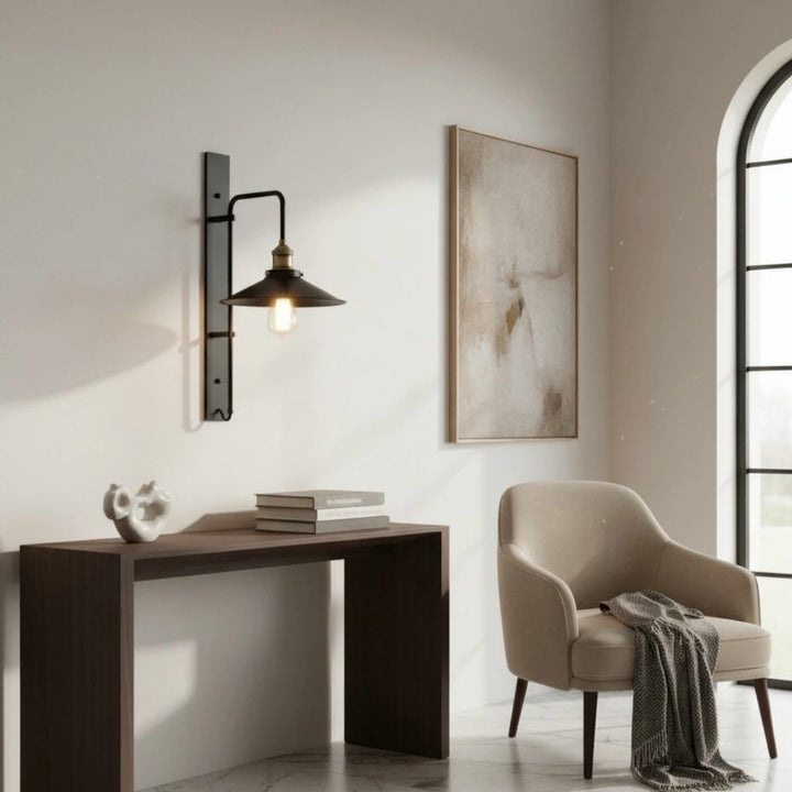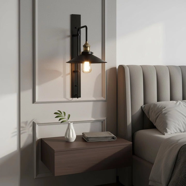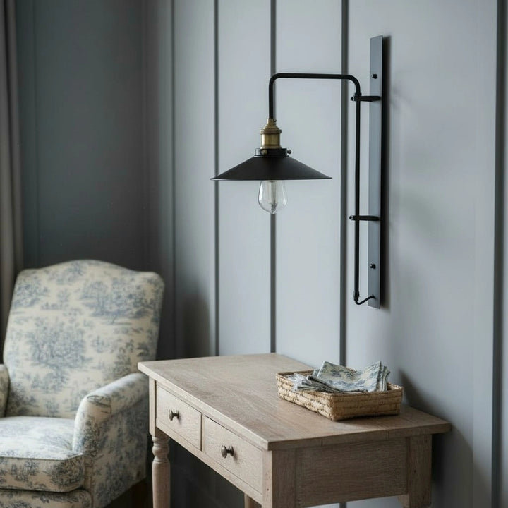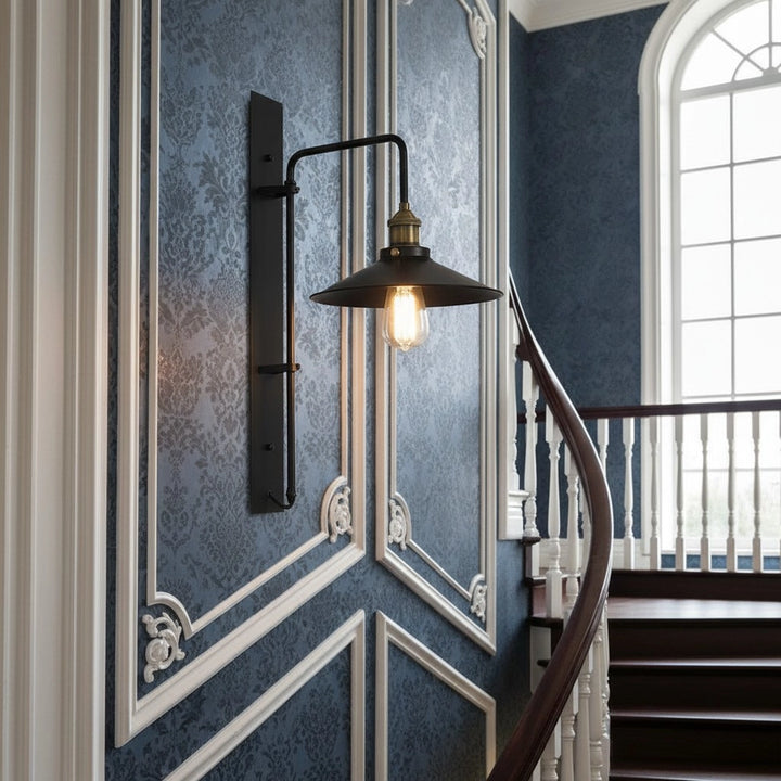 This vintage industrial wall lamp is made of iron and the angle of the lamp head is adjustable. Suitable for bedrooms, corridors, stairwells.