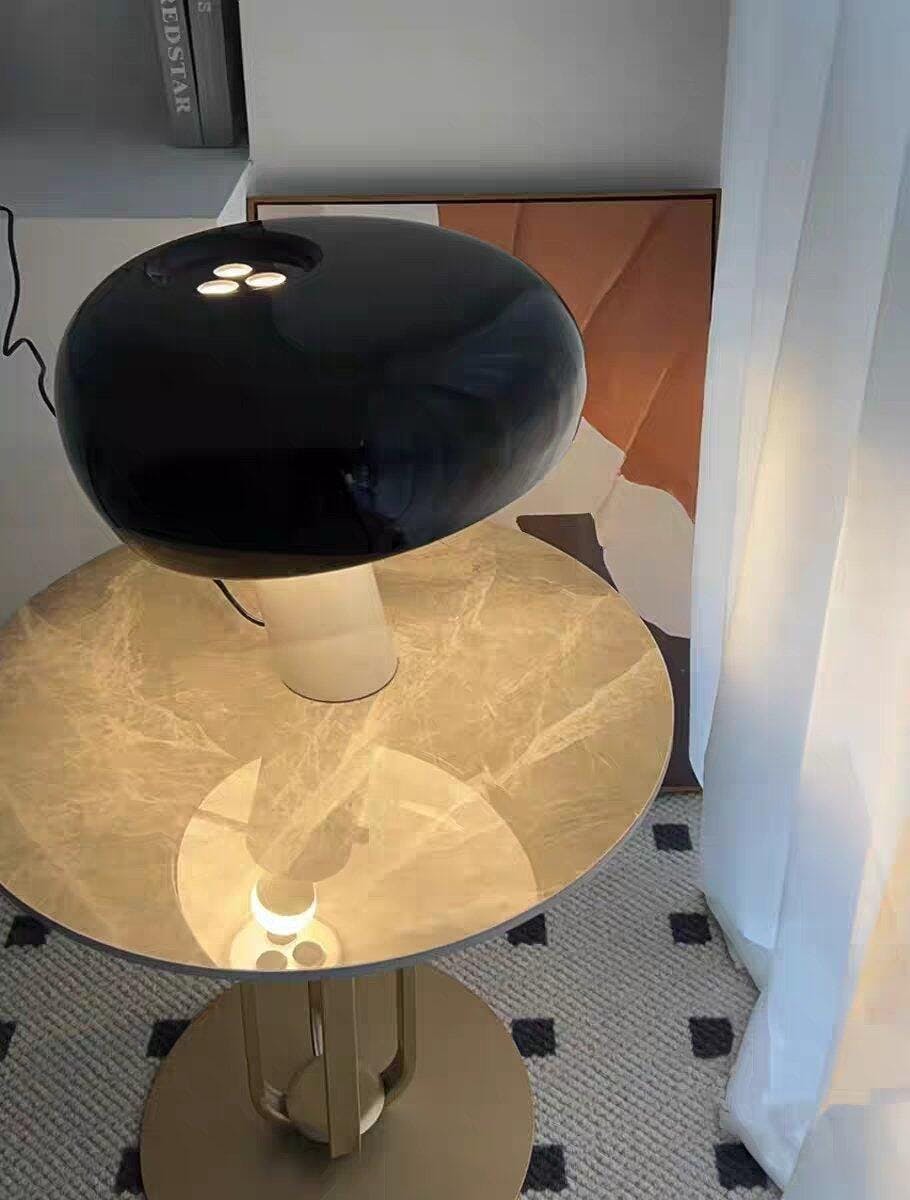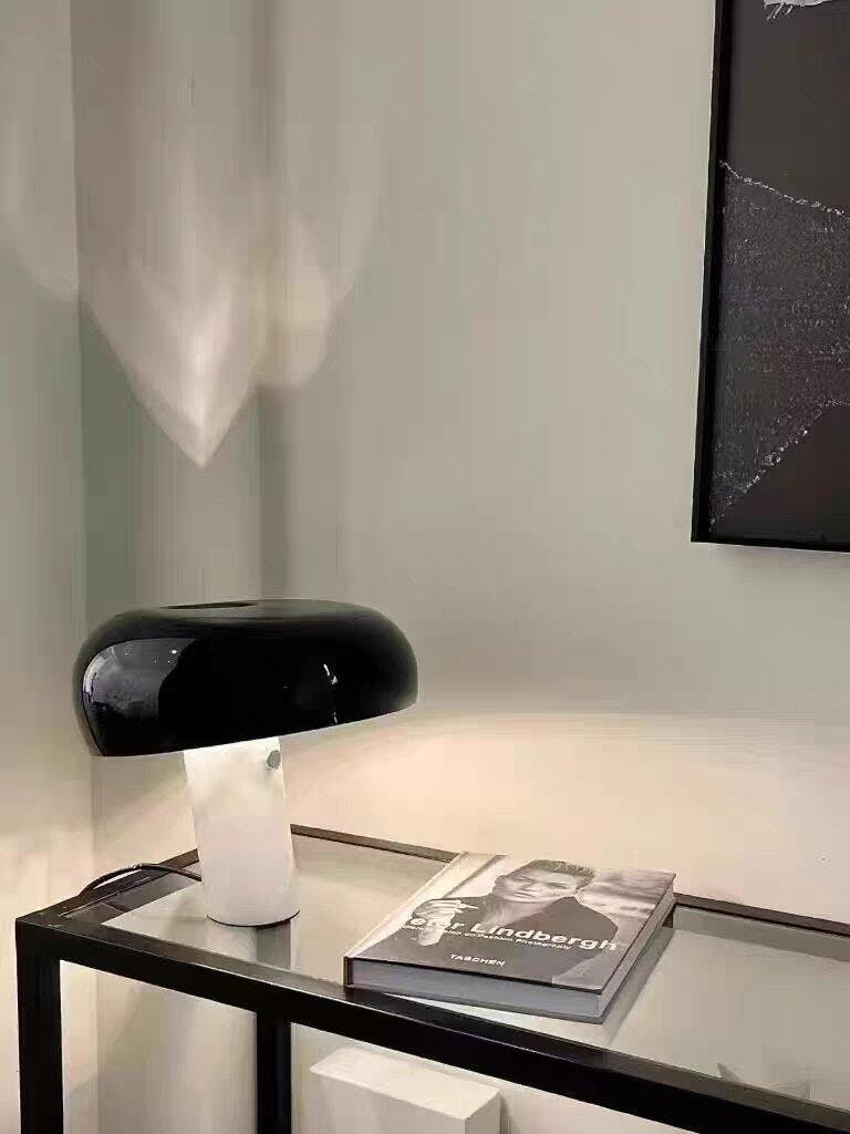 The Modern Mushroom Shade Snoopy Table Lamp features a sleek marble base and softly diffused mushroom-shaped glass shade, designed to create a warm, cozy, and stylish living atmosphere, adding a sophisticated touch to modern, minimalist interiors.