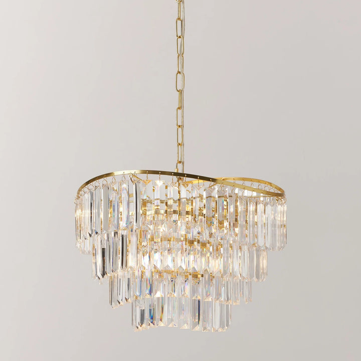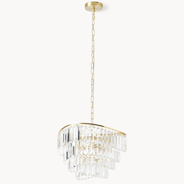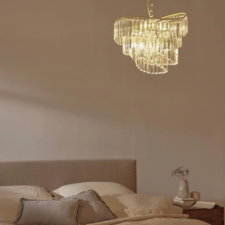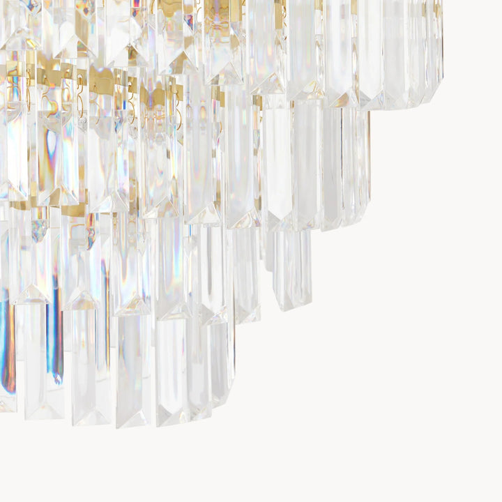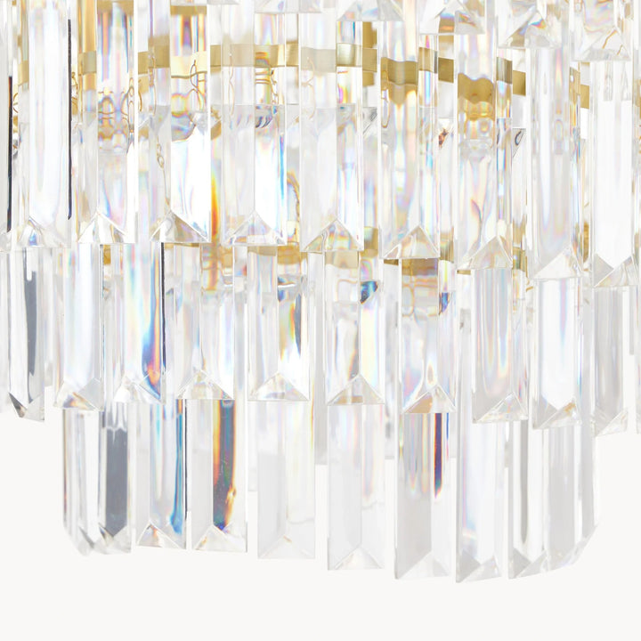 Its modern shape, combined with the light refraction of the crystal shade, brings sophistication and elegance to any space.