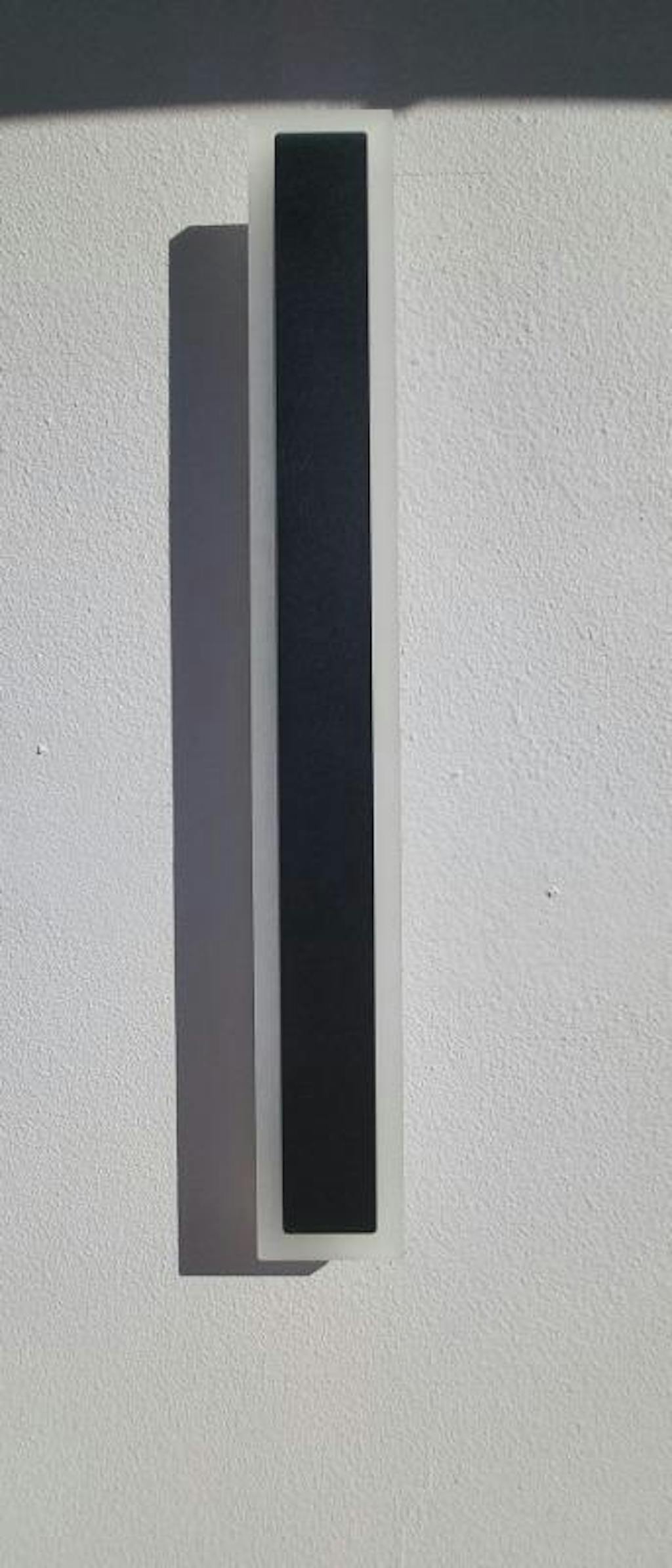 A sleek, modern LED corridor lamp with a minimalist vertical design, featuring a chic black and white scheme for stylish, even, and warm lighting