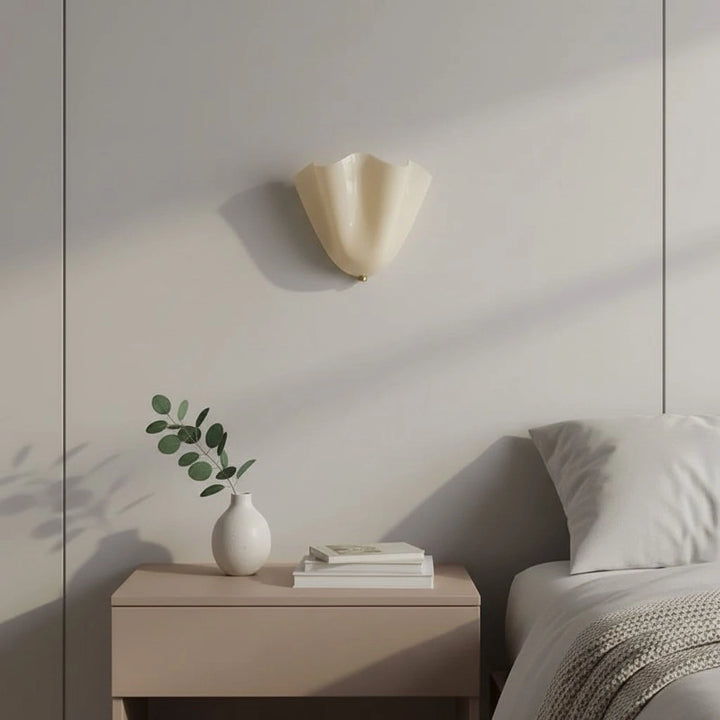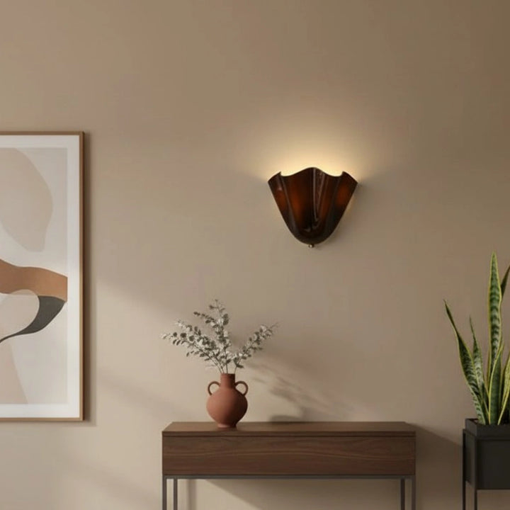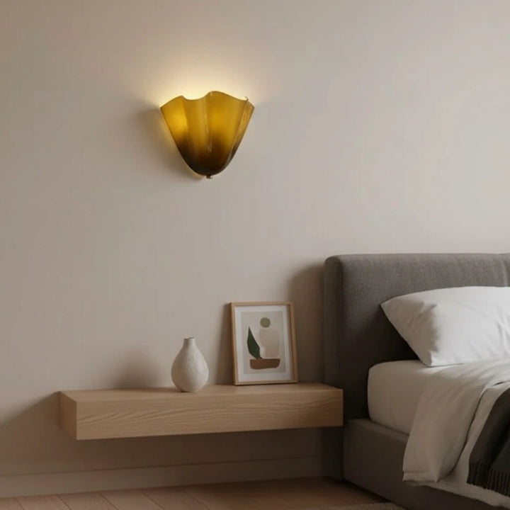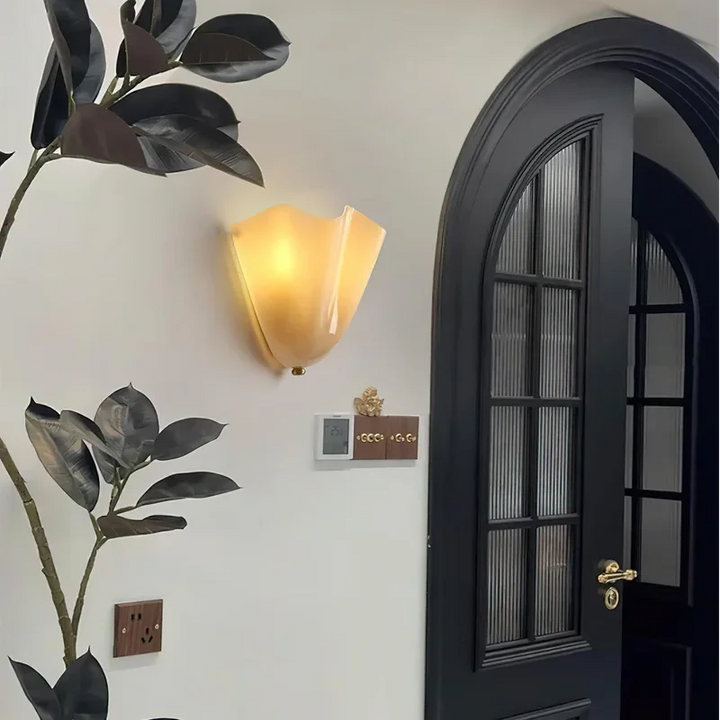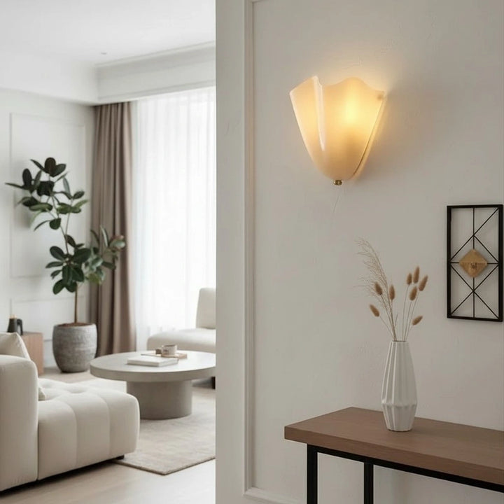 This wall lamp is a shell shaped glass modern design, suitable for installation in bedrooms, living rooms, or corridors.