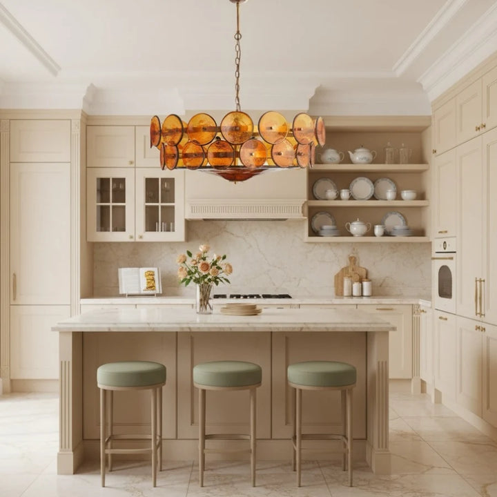 - Ambiente Quente e Acolhedor - Discos de vidro difundem um brilho suave, realçando espaços de jantar ou estar confortáveis.
