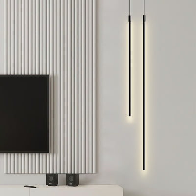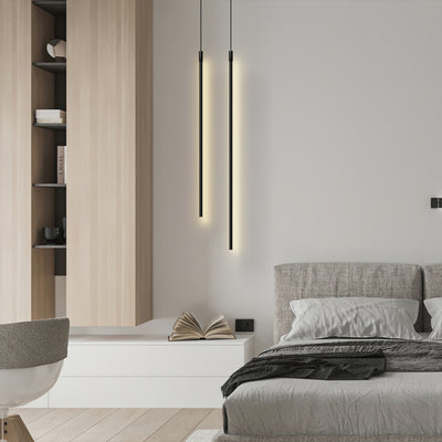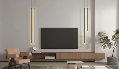 Apresentando um design cilíndrico elegante, esta luminária pendente linear minimalista ocupa um espaço mínimo. A sua aparência fina e elegante transmite uma sensação de leveza enquanto destaca a essência da estética minimalista.