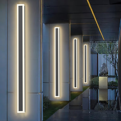 Uma lâmpada de corredor LED elegante e moderna com um design vertical minimalista, apresentando um esquema chique em preto e branco para uma iluminação estilosa, uniforme e quente