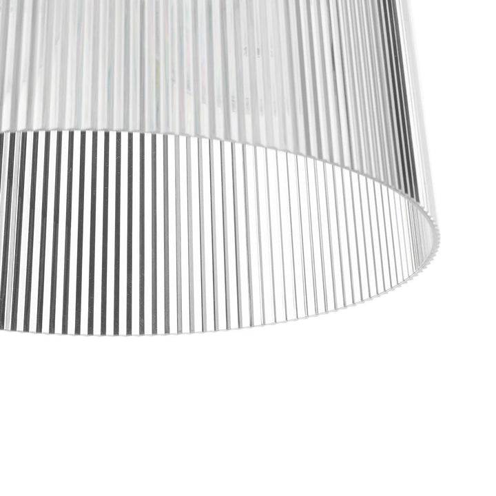 The surface features intricate vertical pleats, and the transparent PC material is bright and clear.