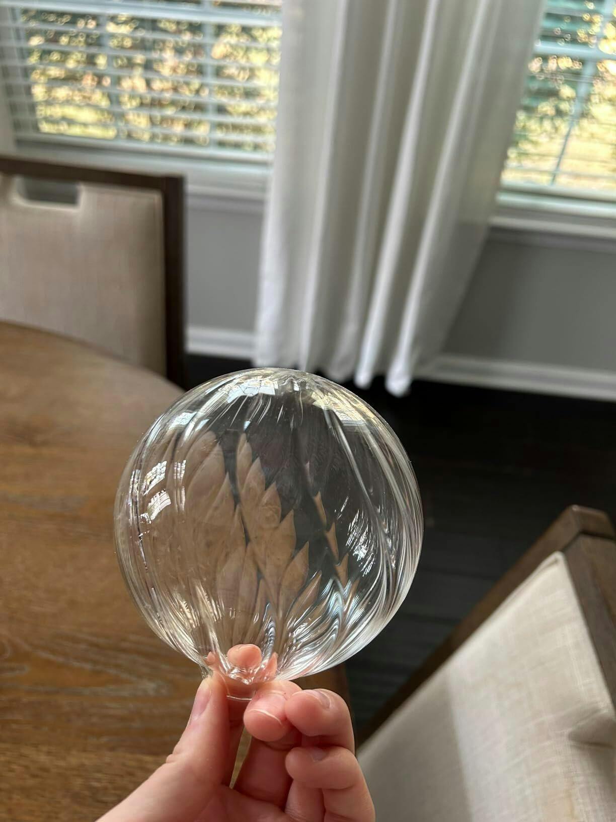 Eleve o seu espaço com a textura única e o brilho radiante deste candeeiro de teto artesanal com globo de vidro canelado.