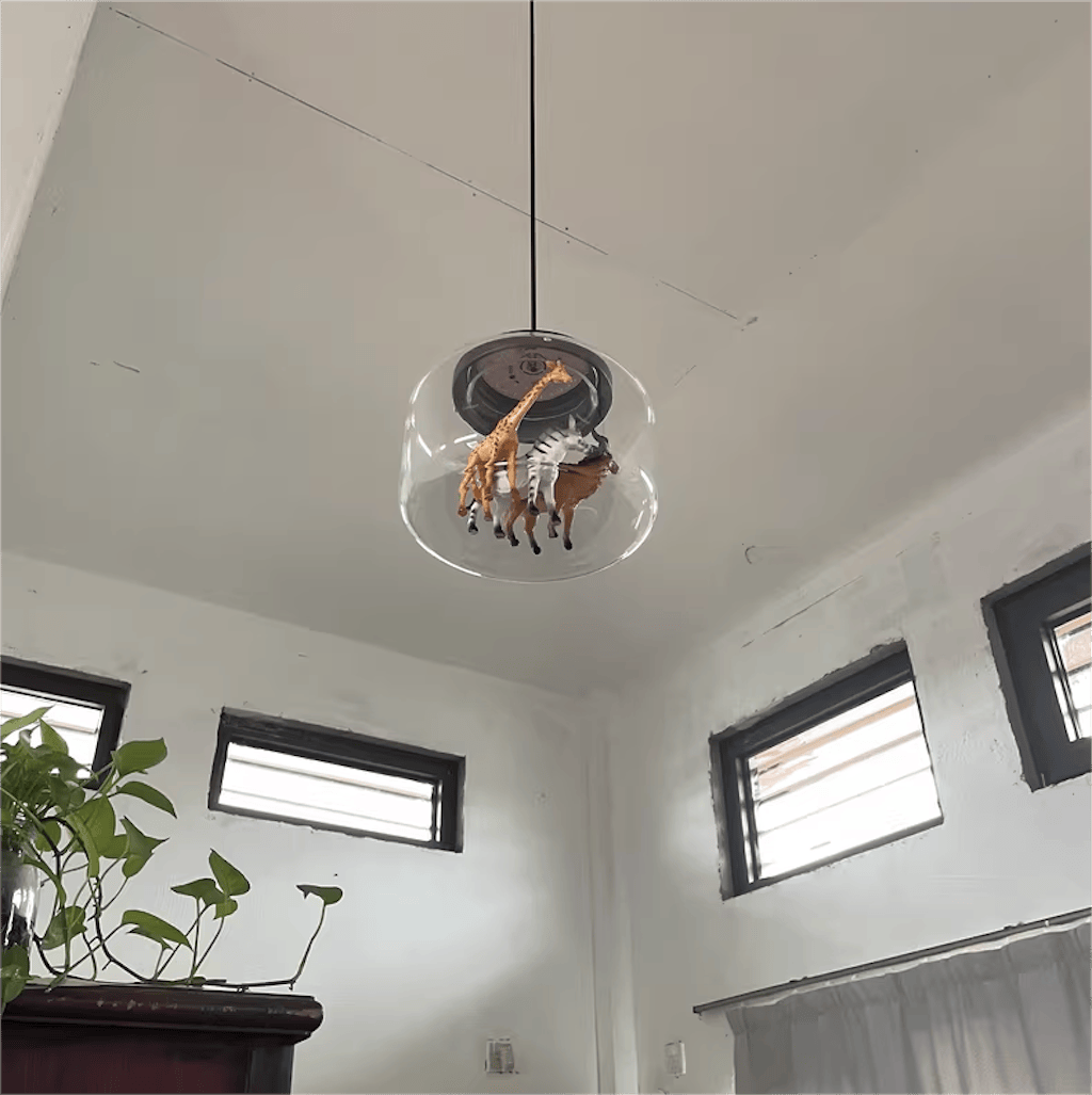 Steg in i den magiska världen med Calliope Zoo Glaspendellampa, en fantasifull och lekfull belysningsarmatur som är designad specifikt för barn.