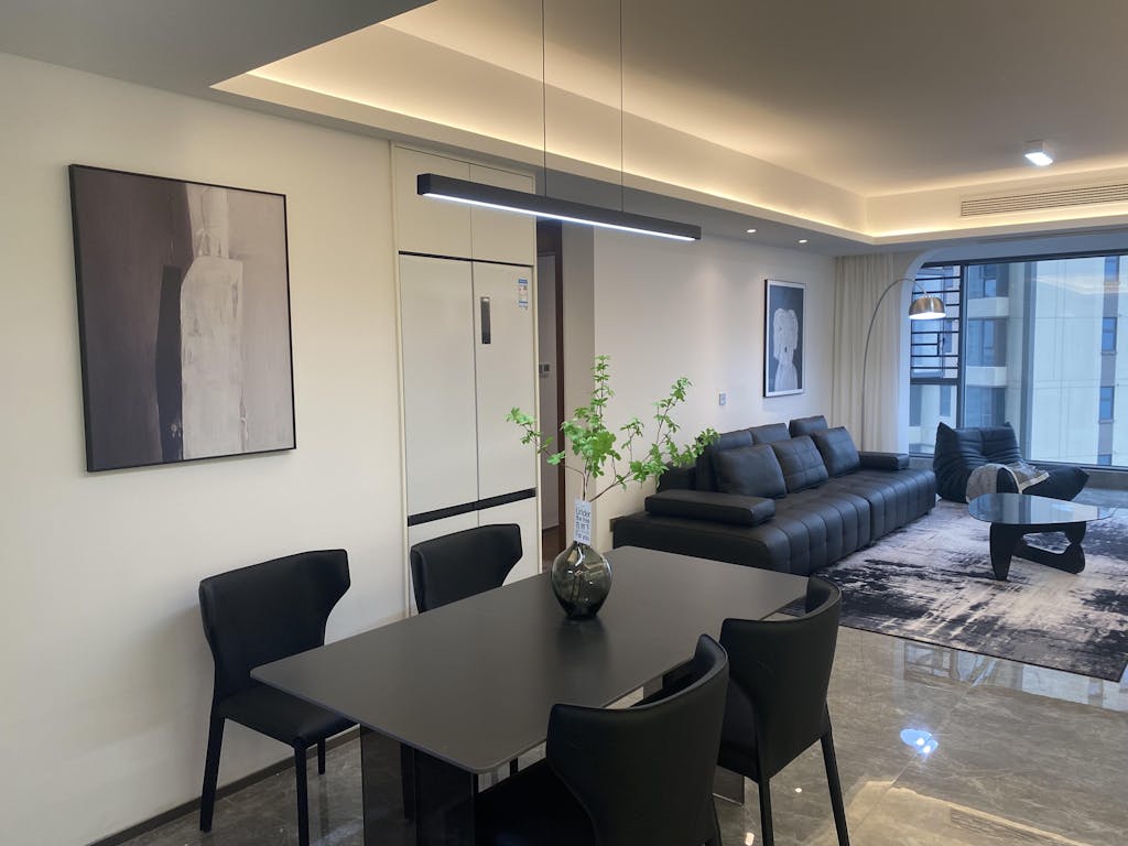 Denna linjära design ger kontinuerlig, jämn belysning och är idealisk för placering ovanför ett bord, som ett matbord eller arbetsbänk.