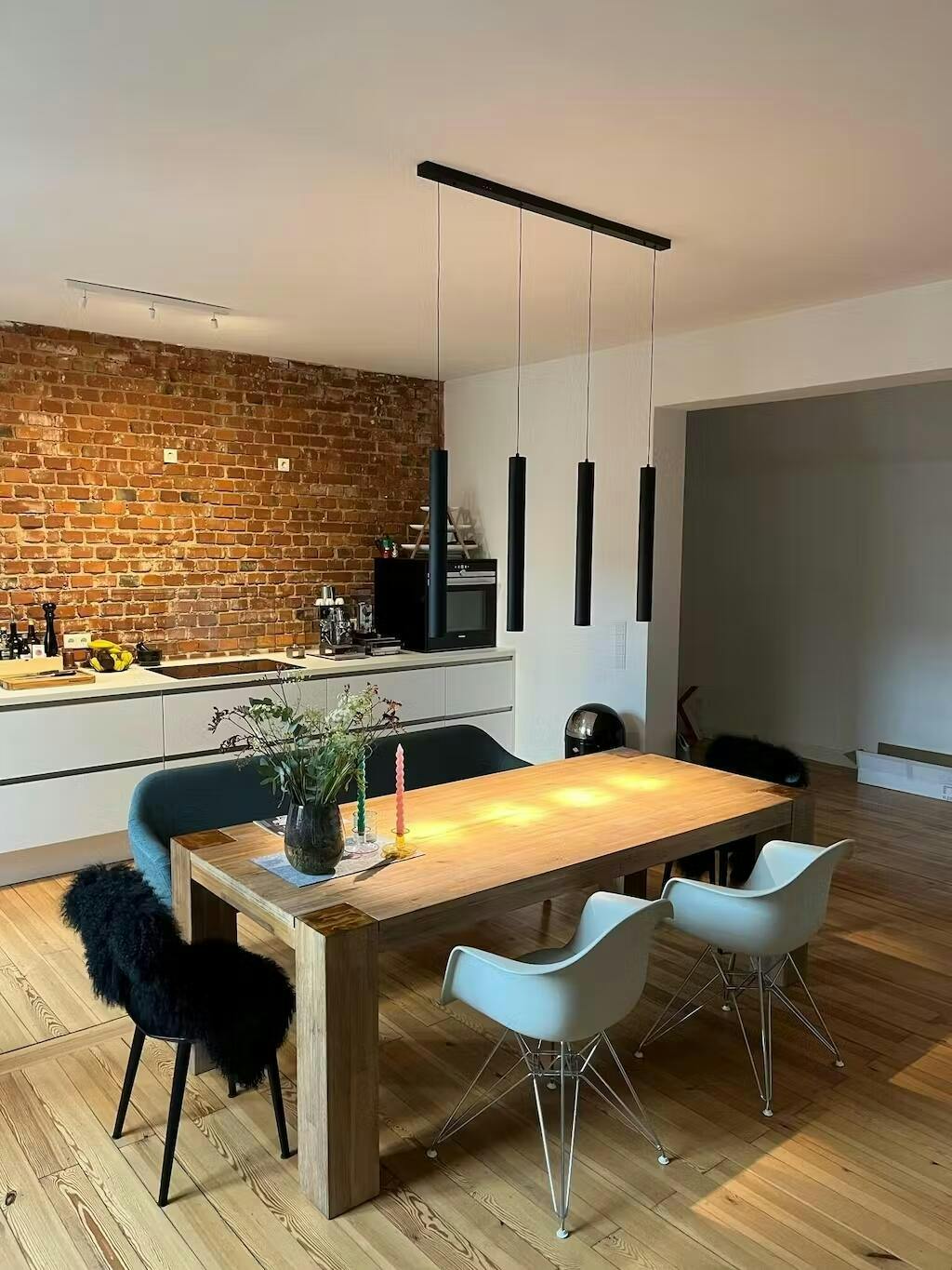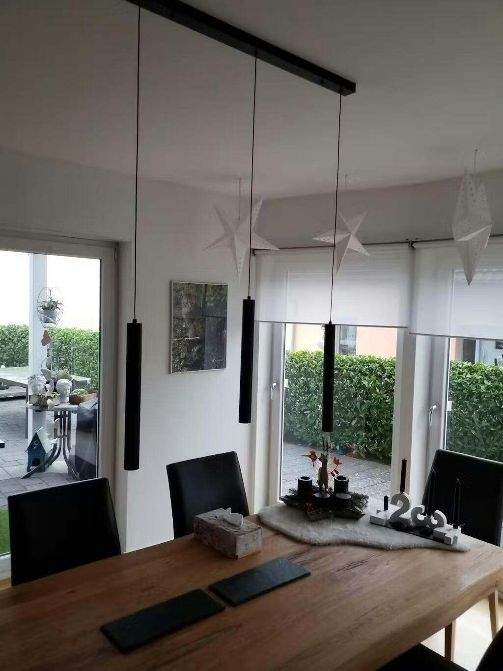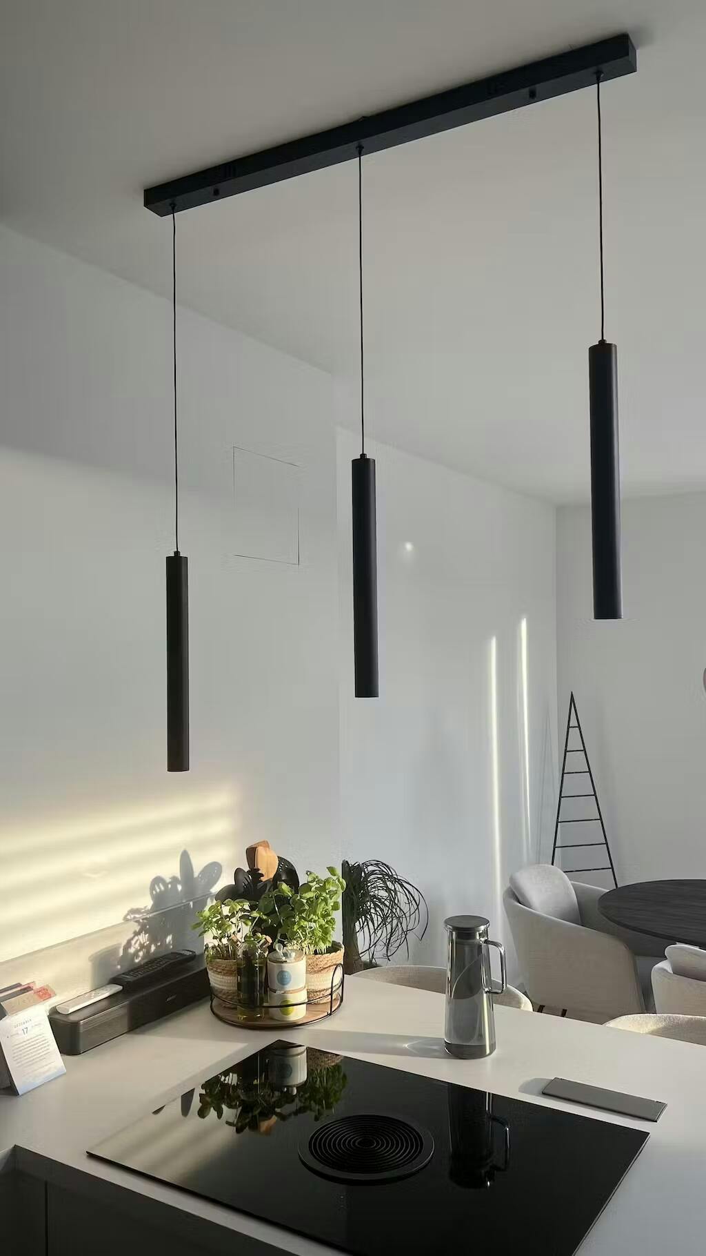 Enkel PERIN pendellampa har en nedåtriktad lampkupa med justerbar höjd. Det innebär att ljuset kan belysa ditt matbord eller arbetsbänk med ett behagligt sken, utan att blända, samtidigt som det skapar ett distinkt modernt utseende