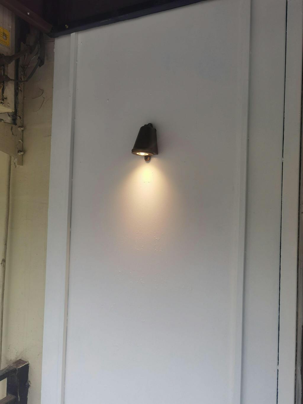 Denna moderna vägglampa är tillverkad av metall och har en vattentät design, vilket gör den lämplig för placering i innergårdar, balkonger och entrépassager.