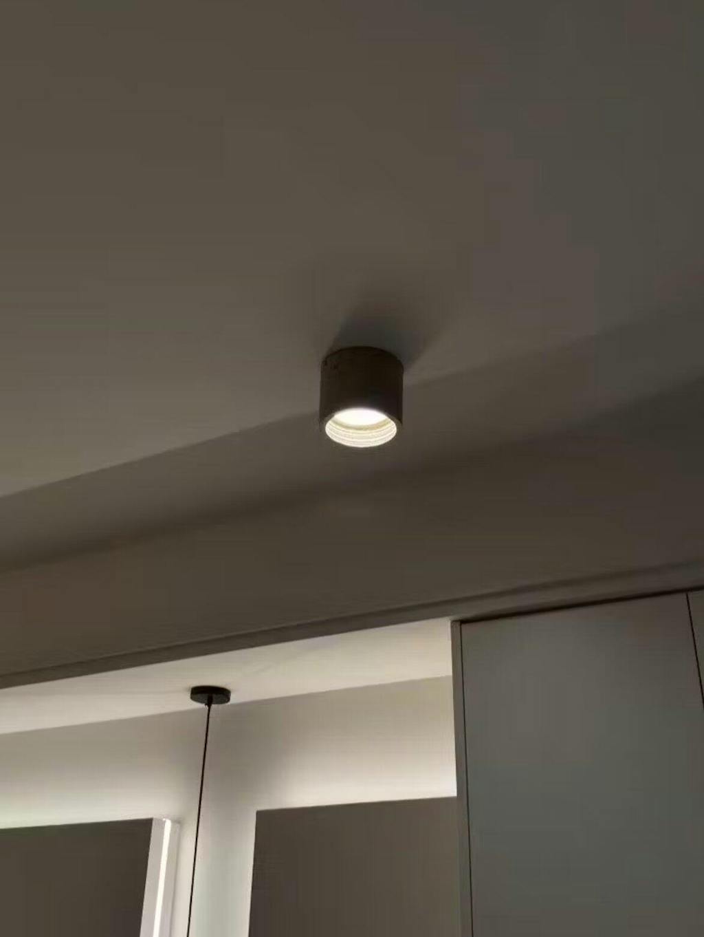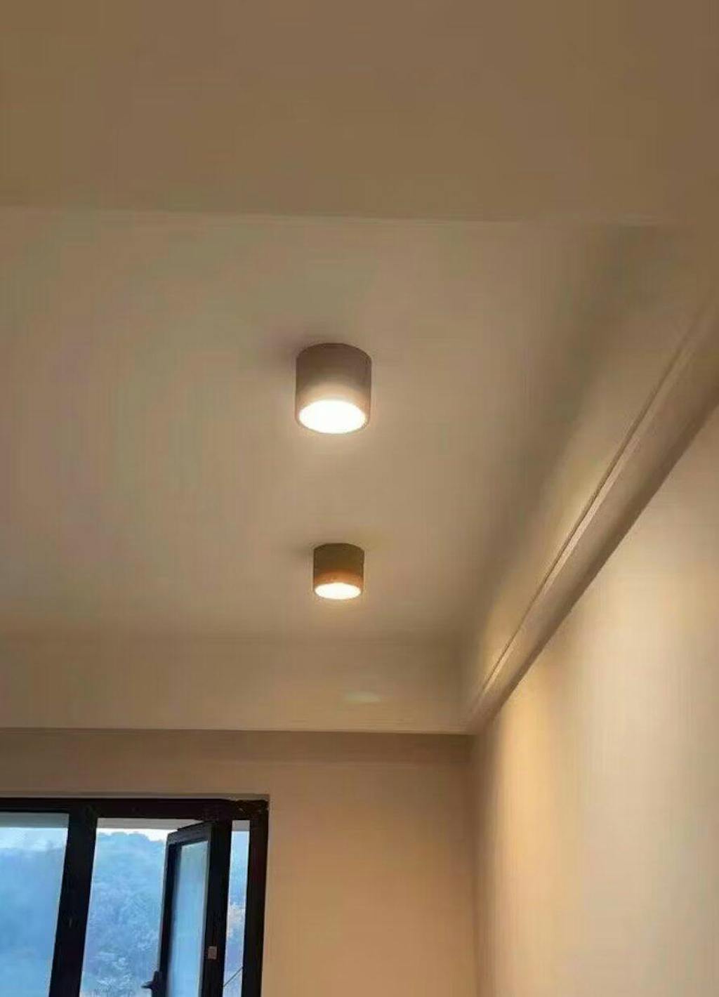 Vaelis cylindriska taklampa kombinerar Wabi-Sabi-filosofi med samtida design genom sin premiumkompositkupa. Materialets organiska textur ger en naturlig värme, medan den cylindriska formen avger ett mjukt, diffust sken för en lugn atmosfär.